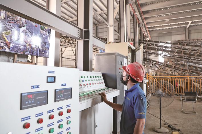 10月11日,宁化宁宇新材料有限公司建筑用砂生产现场,工作人员正在中控室进行现场调度。宁宇建筑垃圾处理及废弃尾矿综合利用项目属省重点项目,总投资3.5亿元,10月正式投产。企业采用建筑垃圾、废弃尾矿等原材料,引进先进技术建成2条生产线,预计年产建筑用砂150万吨,产值3000万元以上。(宁化记者站 刘博文 陈伟 通讯员 巫锡沅 摄影报道)