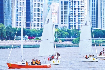 昨日进行了三轮比拼,今日将继续进行多轮比拼。比赛结束后,10艘参赛帆船及福州本地游艇等将组成编队,从冠城游艇码头出发巡游闽江。