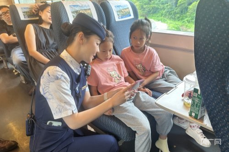 当巡视到4号车厢时,郁叶雯看到一对年轻父母正为孩子发愁。两个约七八岁的小女孩在座位上扭来扭去,不时发出吵闹声,母亲安抚无果。
