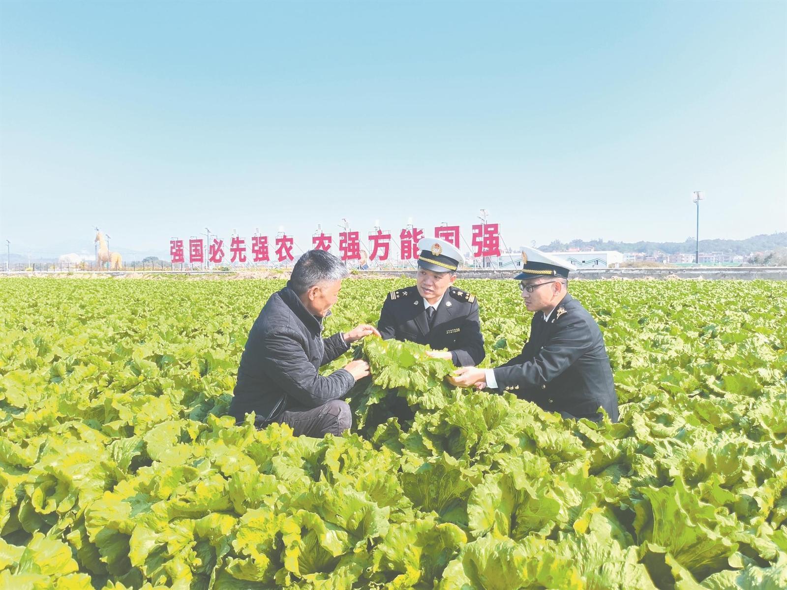 泉州海关关员在出口蔬菜备案种植场对企业进行指导(王玲玲 摄)