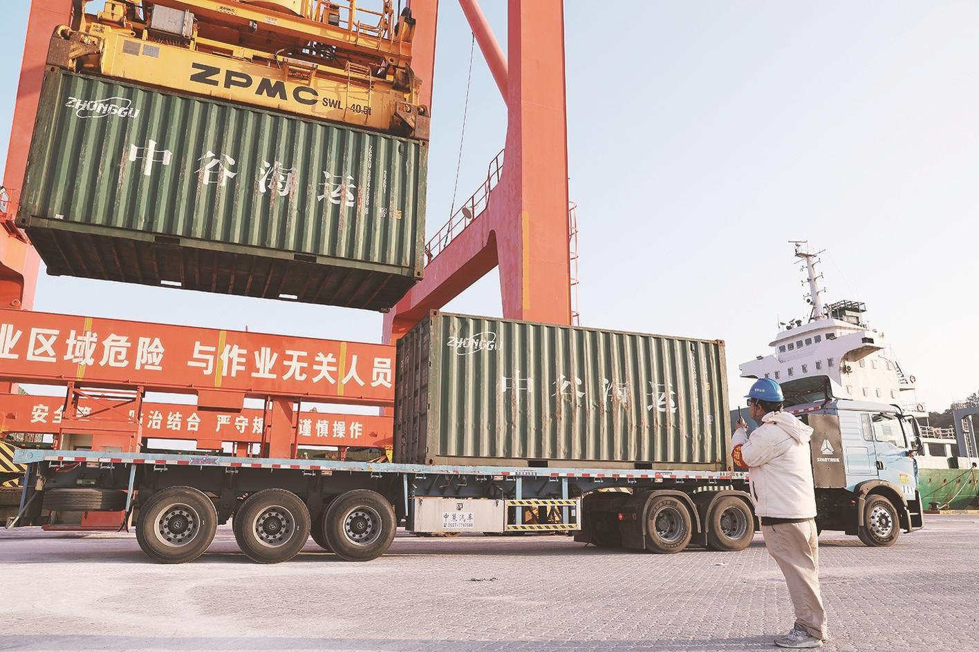 近日,一艘载着123标箱杂货的“新鸿翔65号”轮在东山5000吨级对台码头顺利完成装卸作业后,鸣笛启航驶往厦门。码头上,红色绿色的集装箱错落有致、整齐堆放,牵引车等大型运输设备往来穿梭、高效运转,工作人员各司其职、有条不紊,码头运营新一年迎来“开门红”。