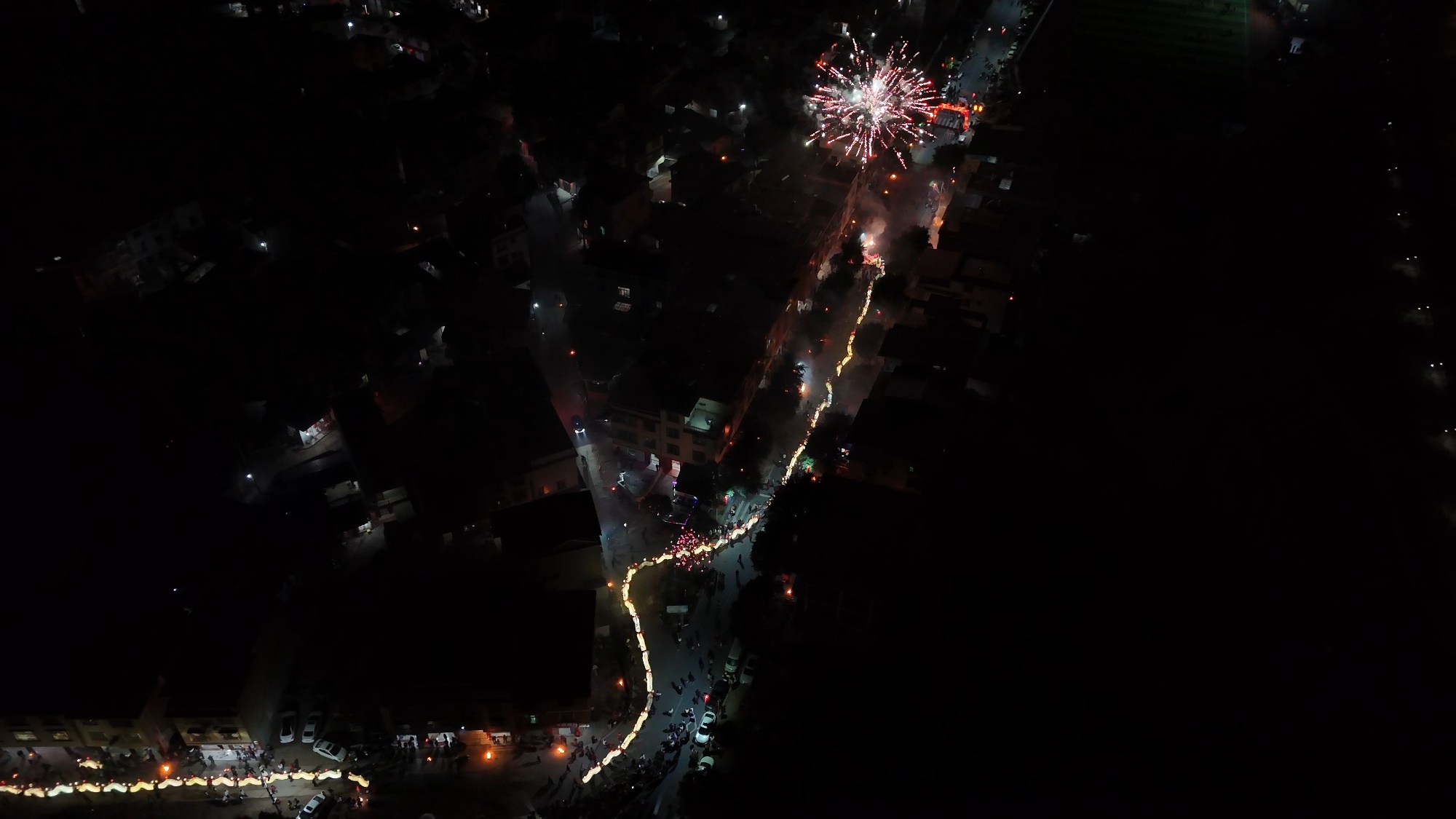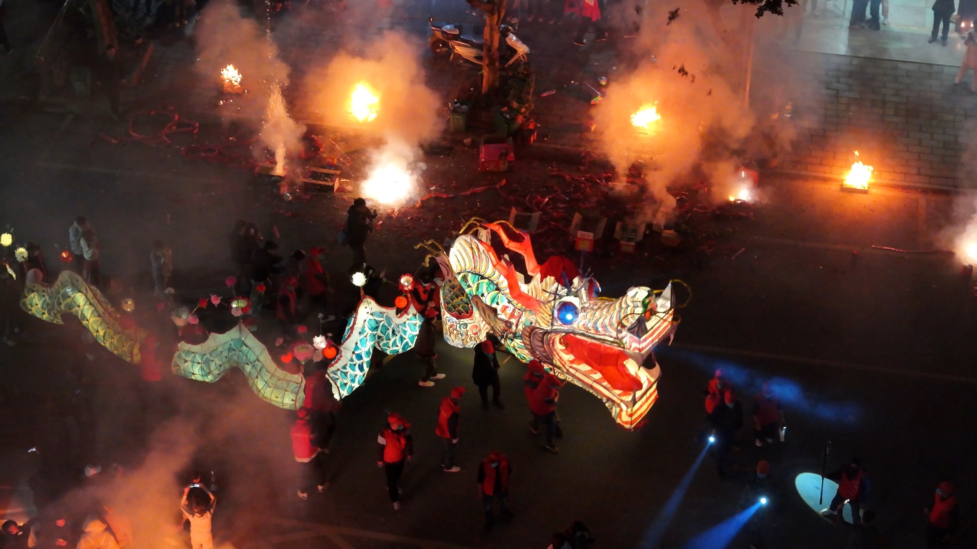 夜幕降临,随着一声号令,游龙队伍正式出发,大龙在夜色中翻腾起舞。所到之处,村民和游客夹道欢迎,家家户户点燃松明火把,燃放鞭炮烟花,气氛格外热烈。