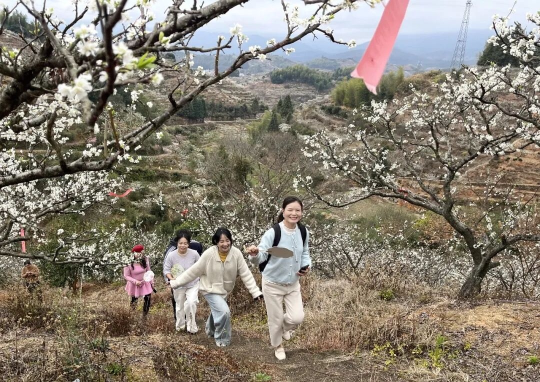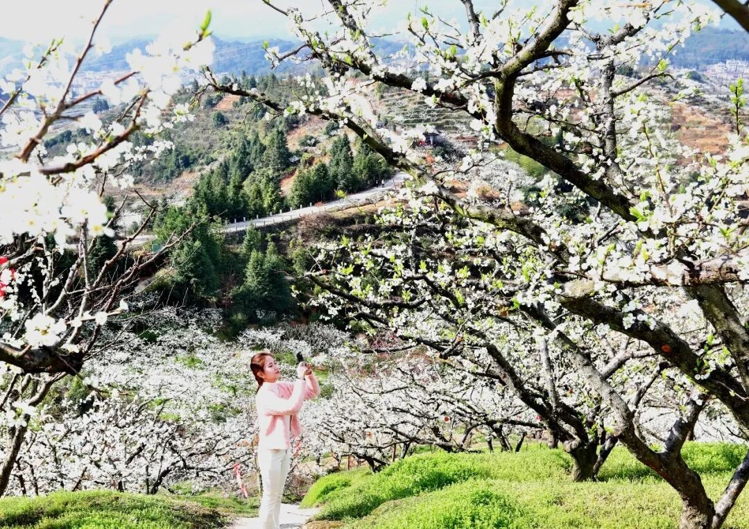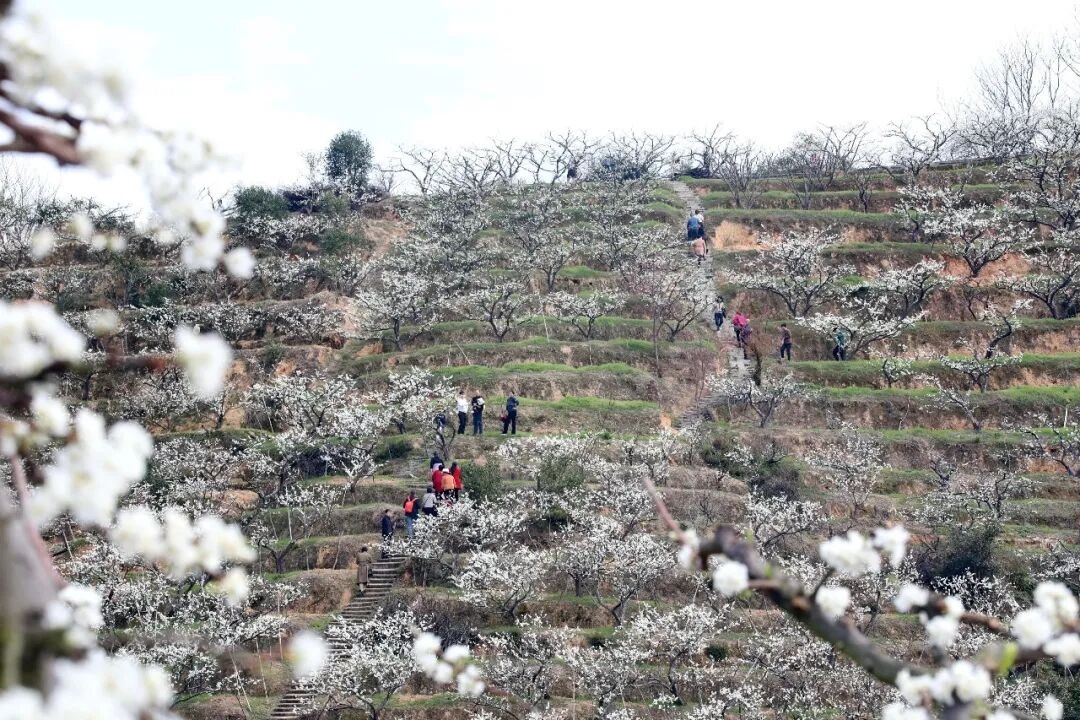 “漫山雪白太震撼了,赏完花还能体验雕版印刷,踏青太值了!”游客马意笑着感叹,从山间小路拾阶而上,一路繁花相伴,步步是景;当地自媒体达人也热情招手邀约,邀游客赏李花、逛古镇、品美食,深度体验国家级非遗雕版印刷的独特魅力。