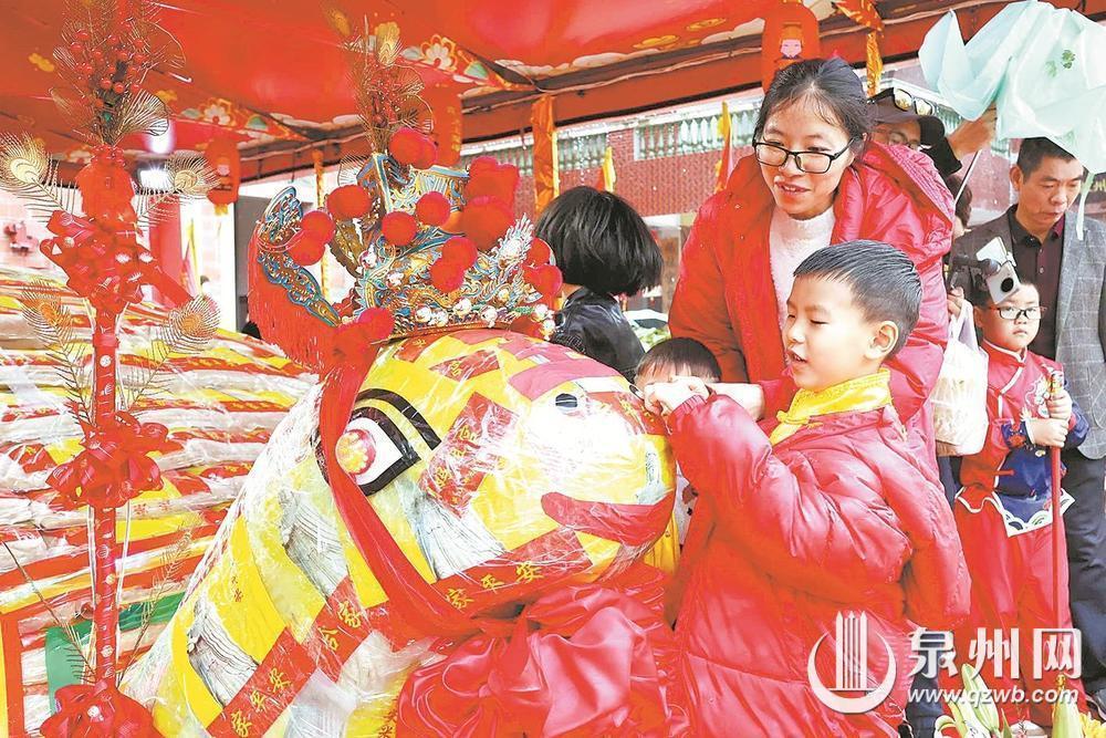 昨日上午,由泉州霞洲妈祖宫与台湾澎湖天后宫共同举行的“平安米龟、水果龙”揭彩祈福仪式暨“马上‘龟’来”闽台文化嘉年华顺利举行。尽管春雨绵绵,现场仍吸引了大量市民、游客。众人在摸“大米龟”、赏民俗、过平安桥、领红蛋中,共同祈盼新一年国泰民安、家庭幸福。