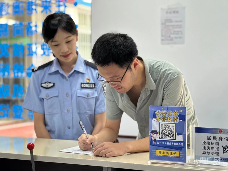 夏茂派出所窗口民警为返乡小吃业主提供服务(央广网发 夏茂派出所供图)