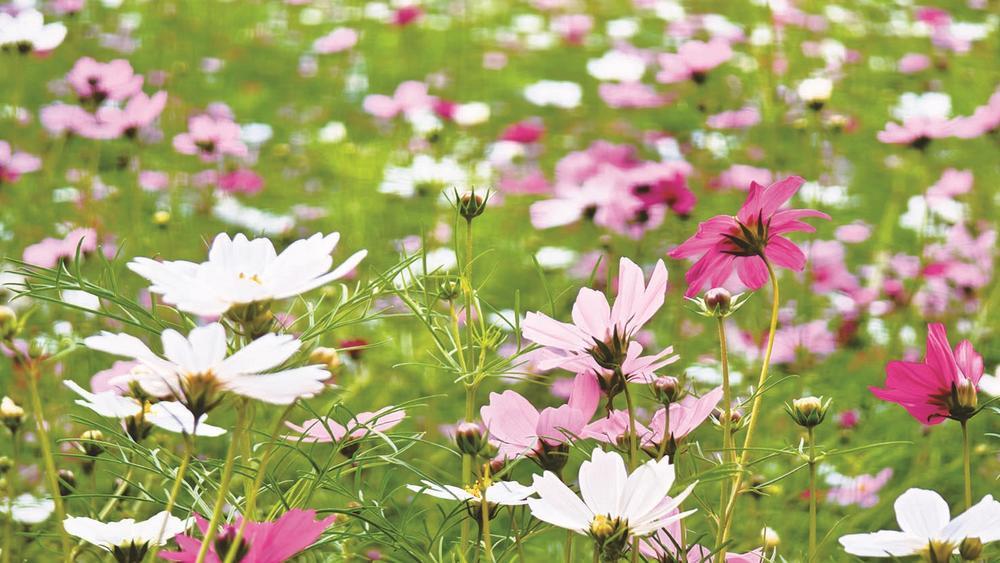 近日,在福州市盲校教学楼内庭,500平方米的波斯菊竞相绽放,淡淡清香弥漫校园。花田边,几个孩子蹲下身,慢慢伸出手,指尖轻轻触碰花瓣的边缘。