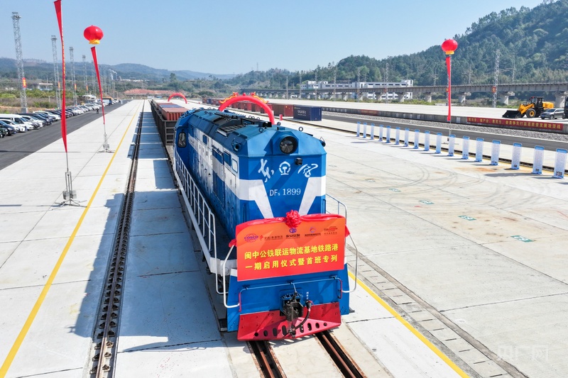 央广网福州3月22日消息(记者罗晓英)3月21日,随着笛声长鸣,一列装载8个40英尺海运集装箱的货物列车,从永安闽中公铁联运物流基地铁路港驶出,标志着福建省首个集“公铁水”多式联运功能于一体的物流枢纽正式投运,预计每年可降低区域物流成本超亿元。