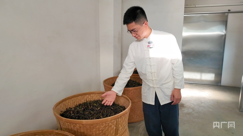 汤小廷正在制茶,查看天山白茶炭焙情况(央广网发 张语欣 摄)