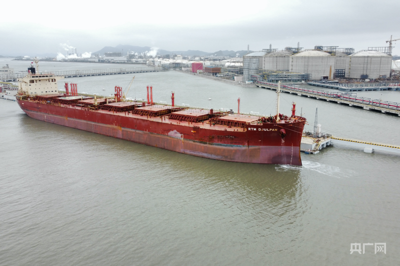 近日,新加坡籍超大型液碱运输船“吉潘(RTM DJULPAN)”轮从福州港江阴港区万华13A泊位顺利离泊(央广网发 福州海事局供图)
