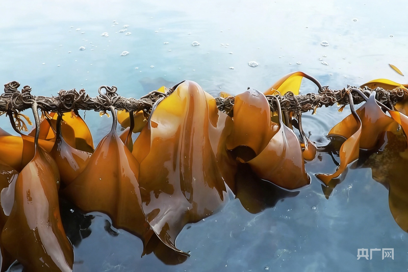 与传统海带相比,“无边海带”中带部宽大、株身长、叶片肥厚,边缘褶皱较少(央广网发 陈成志 摄)