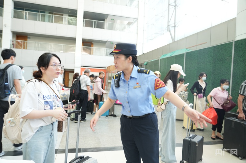 央广网福州10月10日消息(记者龚雯)10月9日,铁路国庆中秋假期运输第11天,中国铁路南昌局集团有限公司福州火车站继续迎来旅客返程高峰。车站里人流如织,热闹非凡。其间有一位默默坚守岗位的客运值班员——赵静,她用自己的热情与耐心,为旅客们编织了一段段温馨的出行记忆。