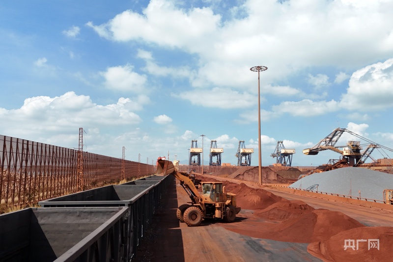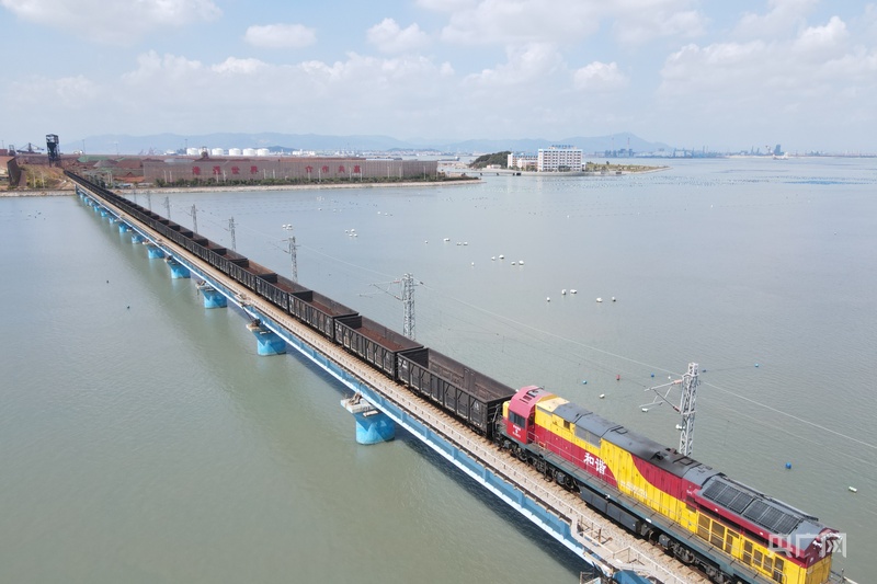 10月11日,一列满载铁矿的列车缓缓驶出福建湄洲湾港铁路支线莆田东罗屿港(央广网记者 罗晓英 摄)