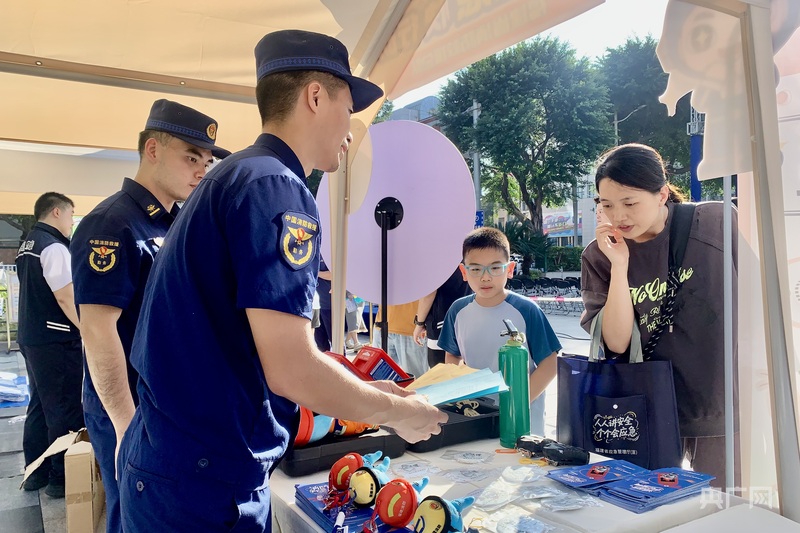 消防员向市民科普相关知识(央广网记者 罗晓英 摄)
