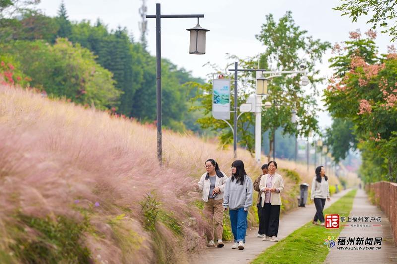 粉色的花海和福州蓝,是秋冬季的绝配。对于喜爱这种多巴胺色调的福州市民来说,乌龙江公园内超2万平方米粉黛乱子草花海不容错过。这片原先预计在10月中下旬盛放的花海,迟到了近一个月。11月18日,在秋冬季的大风中,这片粉黛乱子草花海终于渐入佳境。据乌龙江公园管理处相关负责人介绍,今年福州天气较为特殊,花海最佳观赏点和往年略有不同。未来半个月市民可以感受江畔的粉色童话世界。