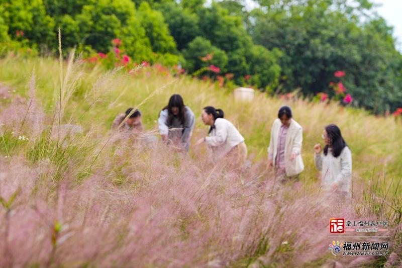 乌龙江湿地公园的粉黛乱子草花海,吸引众多市民前来打卡(包华 摄)
