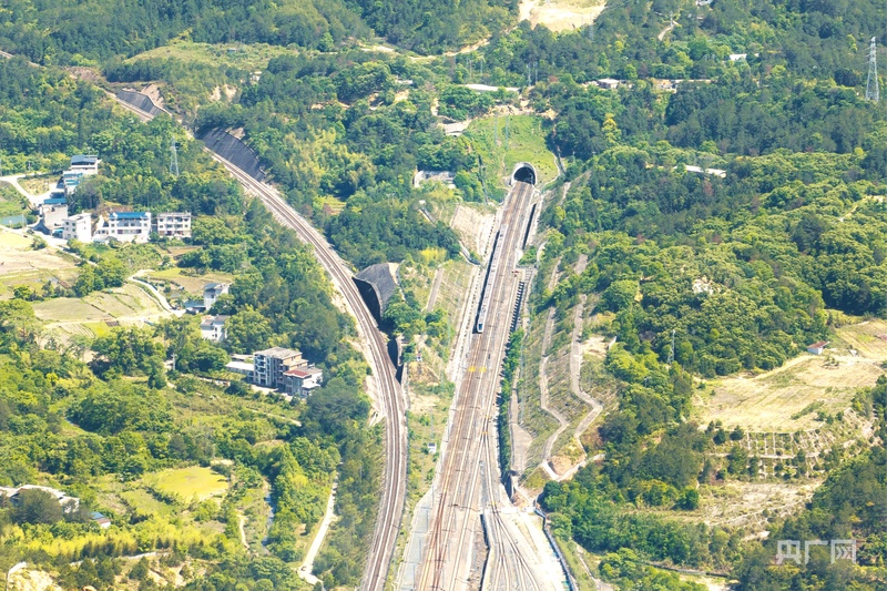 航拍赣瑞龙铁路(央广网发 李宁 摄)