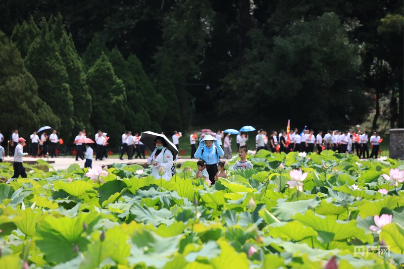 资料图:古田会议会址荷花盛开,吸引游客打卡拍照(央广网发 傅艺鹏 摄)