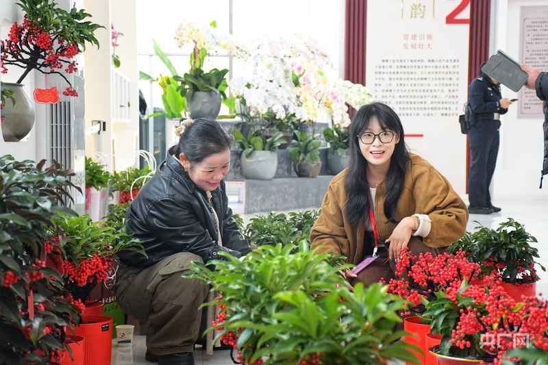游客挑选年宵花(央广网记者 龚雯 摄)
