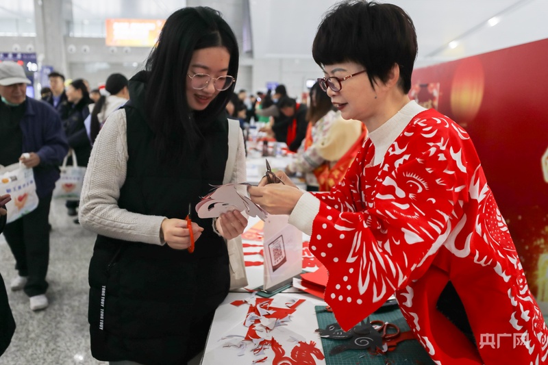 旅客体验非遗剪纸文化(央广网发 刘鑫根 摄)