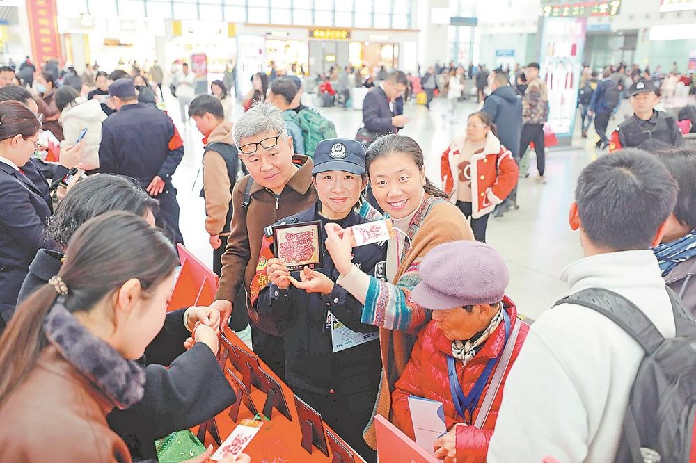 2月2日,春运首日,在福州火车站候车大厅,写春联、剪窗花等传统民俗活动吸引不少旅客驻足参与。这是由福州铁路公安处福州站派出所联合福州火车站等多家单位开展的“马上送福”便民活动,现场民警通过宣传单讲解、案例讲解、互动问答等形式,向旅客普及反诈防骗、防范非法集资及铁路出行安全知识,为往来旅客筑牢平安防线,传递新春暖意。据了解,2026年春运期间福州站预计发送旅客量较去年有所增长。(通讯员 银航 记者 陈欢欢 摄影报道)