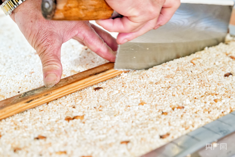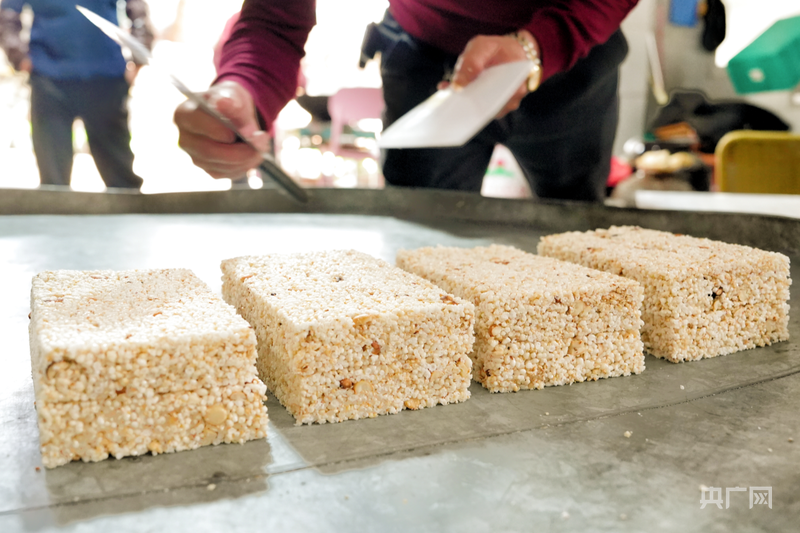 制作好的“米腊尝”被分成一小块便于装袋(央广网记者 罗晓英 摄)