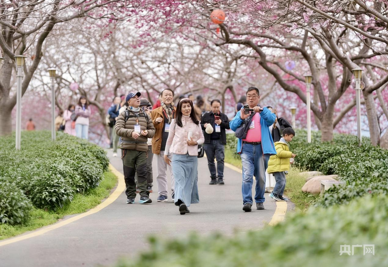 园区内,一位来自东北的黄女士正带着家人赏樱,枝头漫卷的樱花红,让她毫不吝啬地连续按下相机快门。“北方‘窝冬’的时候,来此赏樱,绝对是一个好选择。”几位同样来自东北的游客告诉记者,“天气不冷,空气清新怡人,环境赏心悦目,如入世外桃源。”