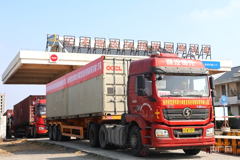 2月9日,满载年货的集装箱卡车整装待发(央广网记者 罗晓英 摄)