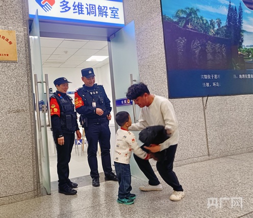 在民警帮助下,魏先生顺利接回孩子(央广网发 福州南站派出所供图)