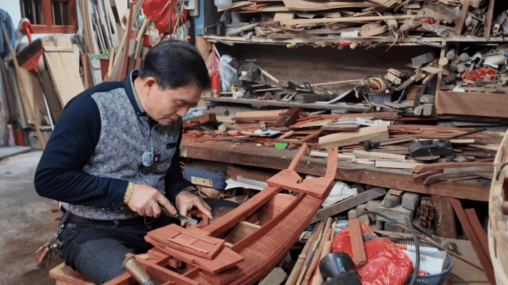 漳州月港中国帆船营造法式非遗传承人郑水土正在制作福船模型(央广网发 张语欣 摄)