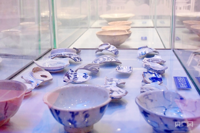 在月港海丝馆展出的明代打捞瓷(央广网发 张语欣 摄)