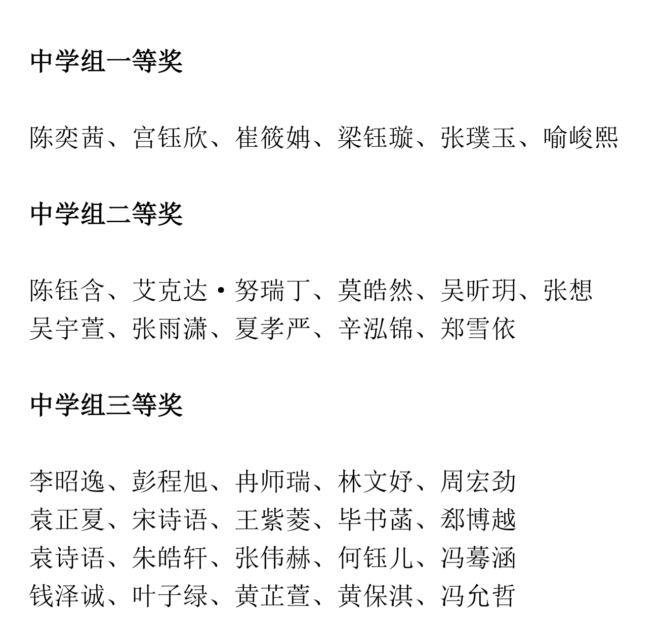 最终,中学组全国总决选共产生一等奖6人,二等奖10人,三等奖20人。