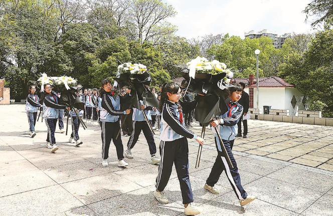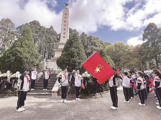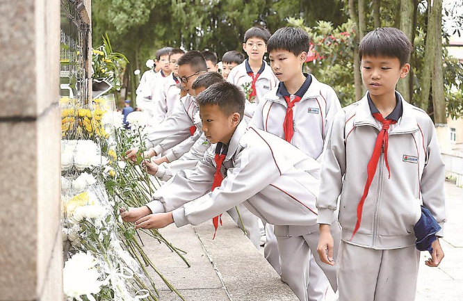 据了解,清明期间,全省将有百万师生参与祭英烈活动,各地将祭扫现场变成“行走的思政课”,通过实景演绎、描红体验、站班岗、诗歌朗诵等形式,让红色基因在青少年心中生根发芽。