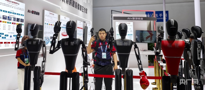 现场体验区中展示的人形机器人(央广网记者 张子剑 摄)