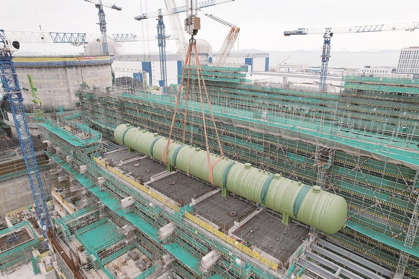 对比漳州核电1号、2号机组2段式运输吊装方式,本次3号机组除氧器采用整体运输至漳州现场,一次性吊装就位。除氧器顺利吊装就位为常规岛给水回热系统后续的安装创造了先决条件。(漳州融媒记者 郑斯楠 通讯员 刘喜阳 文/供图)