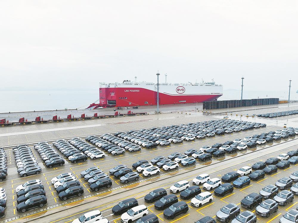 12月19日,装载827辆比亚迪新能源汽车的“比亚迪长沙”号滚装货轮从泉州港石湖港区启航,前往德国、比利时等欧洲国家。这是比亚迪自营船队首次将泉州作为出运港,意味着泉州在构建现代化港口集疏运体系、深度融入全球新能源汽车产业链上迈出了重要一步。(本报记者 黄琼芬 通讯员 林泳坤 黄忠族 摄影报道)