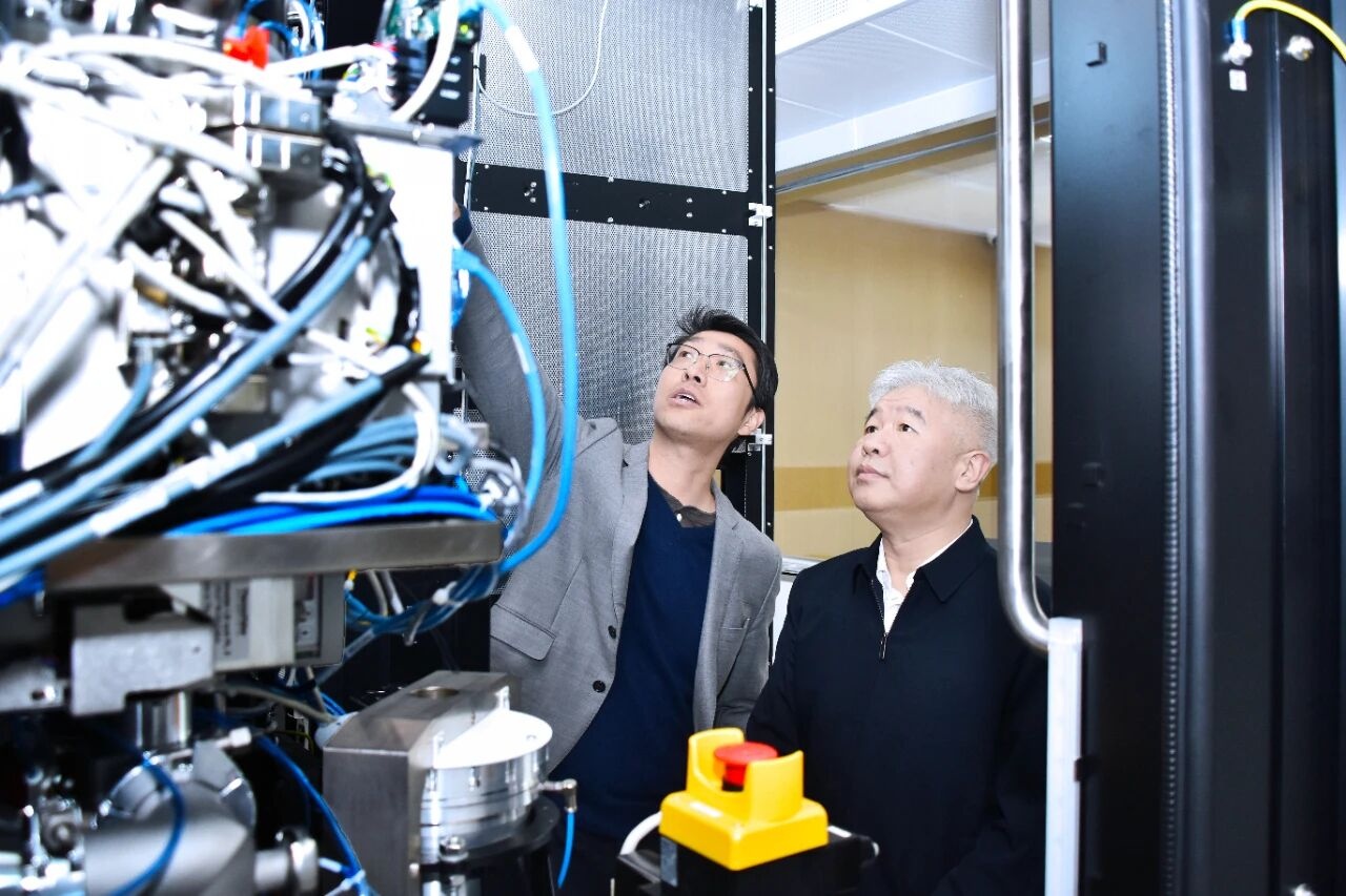 福建农林大学党委书记赖海榕察看300千伏高端冷冻透射电镜(Krios 5)安装调试情况(福建农林大学供图)