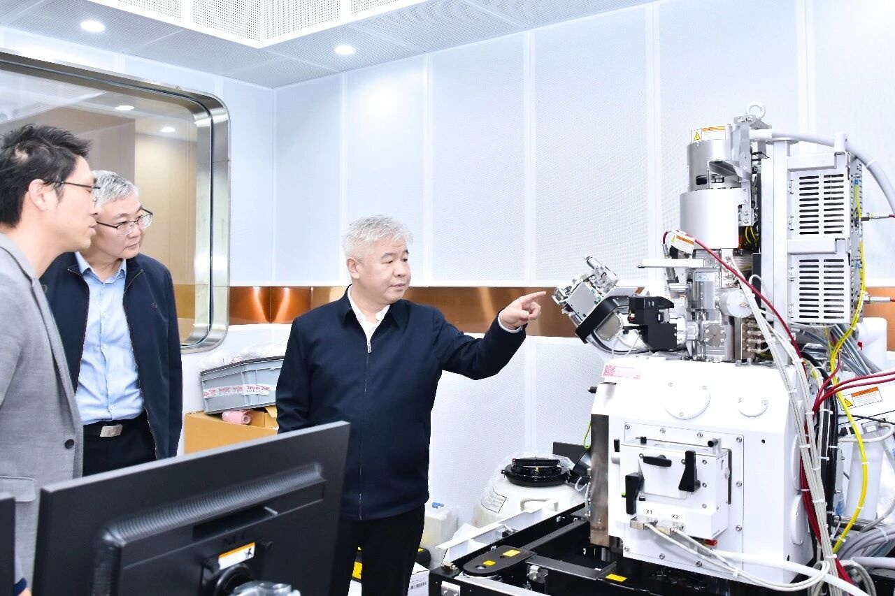 福建农林大学党委书记赖海榕察看冷冻聚焦离子束扫描电镜安装调试情况(福建农林大学供图)