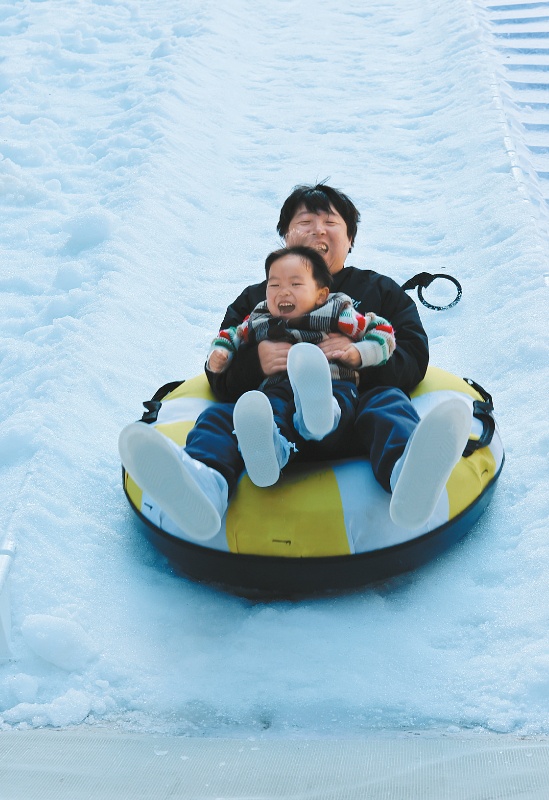 雪滑梯令游客开怀大笑(邱琳娜 摄)