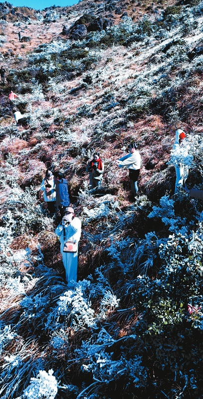 除了人造冰雪景观,龙岩的自然冬日景观同样吸引着众多市民和游客。元旦后持续的低温、寒潮天气,上杭县蛟洋镇双髻山和新罗区雁石镇莲台山便成了观赏雾凇的绝佳去处。