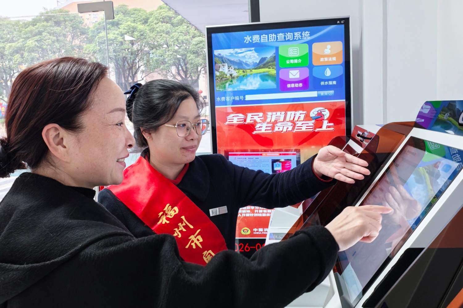 福州市自来水公司五四营业厅窗口工作人员现场指引用户办理业务(福州市自来水公司供图)