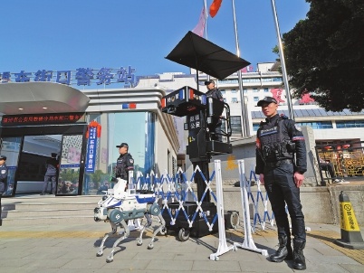 苏万宝商圈作为全省最大城市综合体,对治安防控提出更高要求。为此,苏万宝警务站构建起“地面巡防+空中巡查+视频监控”的立体防控网,让安全无死角。“无人机管高空巡查,巡逻机器人守人流密集区,我们的‘眼睛’无处不在。”苏万宝警务站民警丁林成指着屏幕介绍。