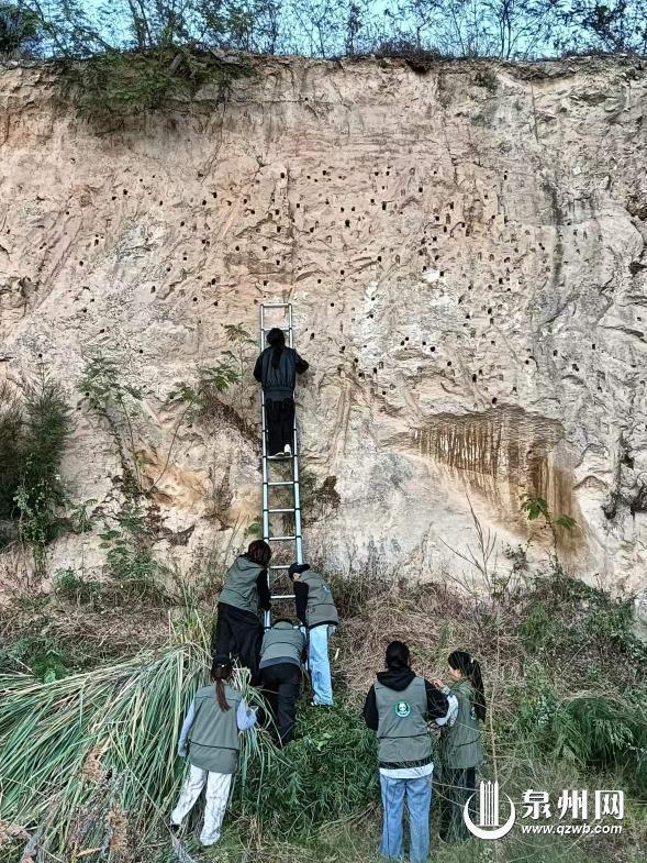 近日,十余名泉州市观鸟学会工作人员与志愿者走进位于石狮峡谷旅游路的栗喉蜂虎栖息地,开展巢穴统计、洞深测量、洞况探查等工作。这标志着石狮市新一轮栗喉蜂虎保护项目正式启动,“最美小鸟”在石狮的“家”将再次焕新。