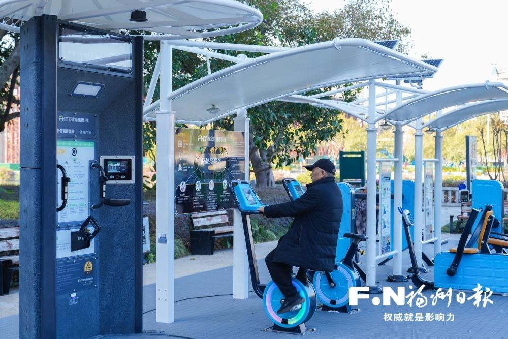 在光明港公园南岸的亚峰体育公园园区,旧版的健身设施旁边,4件多元智能健身设备已完成安装,并于本周投入使用。这套设备兼顾不同年龄段及体能水平人群的健身需求。现场工作人员告诉记者,为配合台江区推进公共体育服务提质增效,公园新开辟了约120平方米的室外智慧健身房,以此完善公园体育运动设施体系,科学指导游客健身。