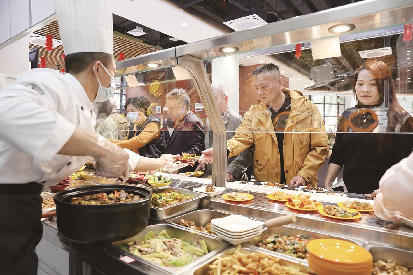 “邻好·社区服务中心”(上墩新苑)社区餐厅开业首日,市民接踵前来(郑文典 摄)