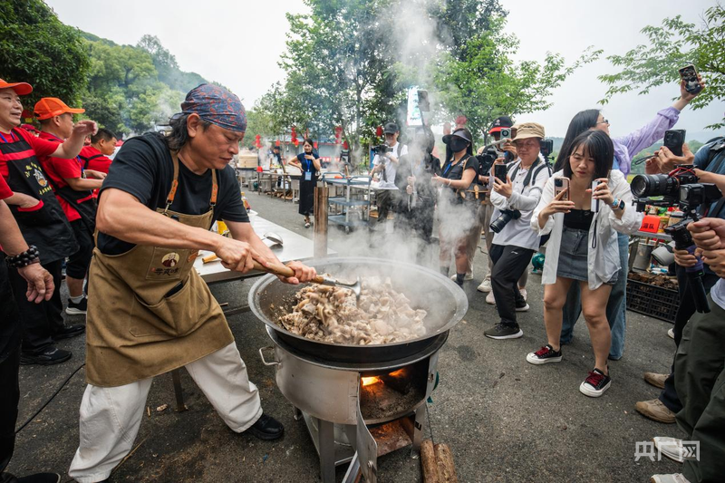 比赛现场,24口大锅同时开炒,选手们以永安红烧猪手、宁化松圆子、将乐高山竹笋、沙县高砂泥鳅粉干等地道食材,烹制出一道道充满烟火气的乡村美味。大赛以“人情味、烟火气、慢生活、真山水”为内核,采用“网红+赛事+文旅”模式,邀请网络美食名人现场献技,助力乡村美食文化传播。