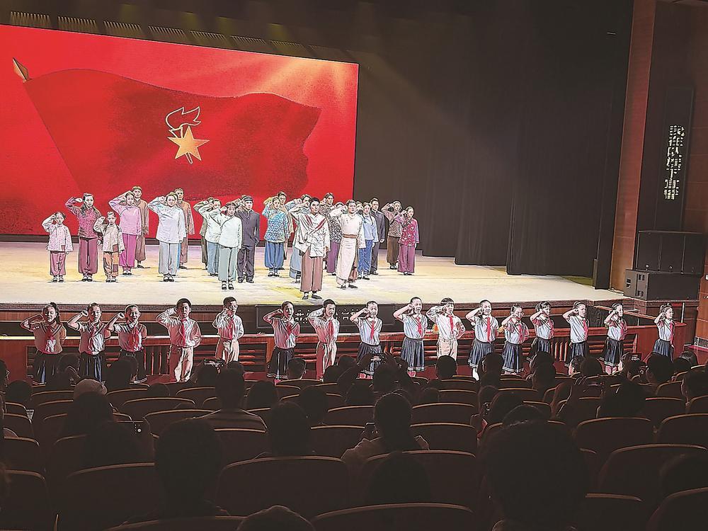 演出伊始,孩子们手捧菊花,开启与革命先烈的跨时空对话。演员用醇厚的闽剧唱腔、细腻的表演,将革命先烈的家国大义与赤胆忠心演绎得入木三分。尾声中,当一声“山河无恙”响彻剧场,全体演员与参演学生缓步走向凌福顺烈士的雕塑,深深鞠躬、敬献鲜花。继而,舞台上下,人们在《百年红船》的旋律中挥舞星灯,聚成光海。 (记者 陈尹荔 通讯员 李笑扬 陈玫 文/图)