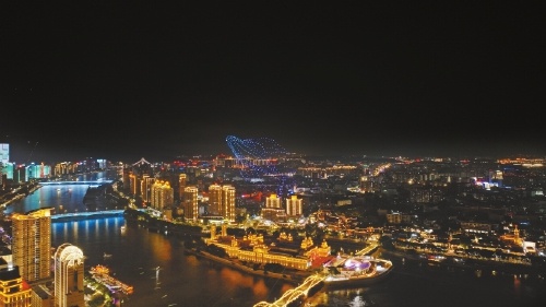 70多岁的刘先生家住中亭街附近,长假期间中洲岛上空举办的4场无人机灯光秀,他都看了。他说:“闽江的夜景越来越美,无人机表演越来越精彩。看到这么多游客到这里看演出,我很自豪!”