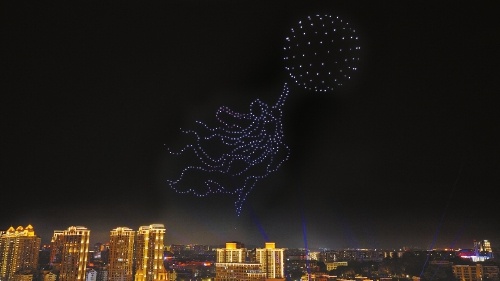 气势恢宏的“金龙”在空中飞舞、巨大的“鲲”跃出海面……无人机展现的画面,为月圆之夜增添了吉祥寓意,赢得人们阵阵喝彩。