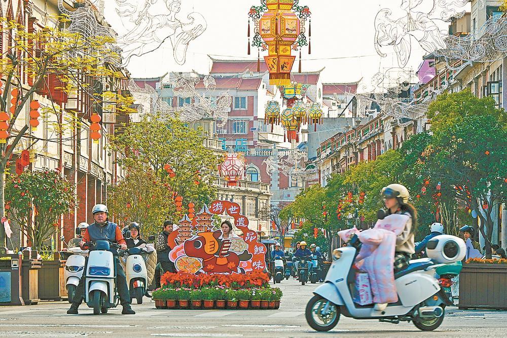 新春将近,泉州古城年味正浓,“马元素”随处可见。近日,泉州古城马年生肖IP装置“六合同风马”全部亮相,带动广大市民游客纷纷走上街头“拍”马。