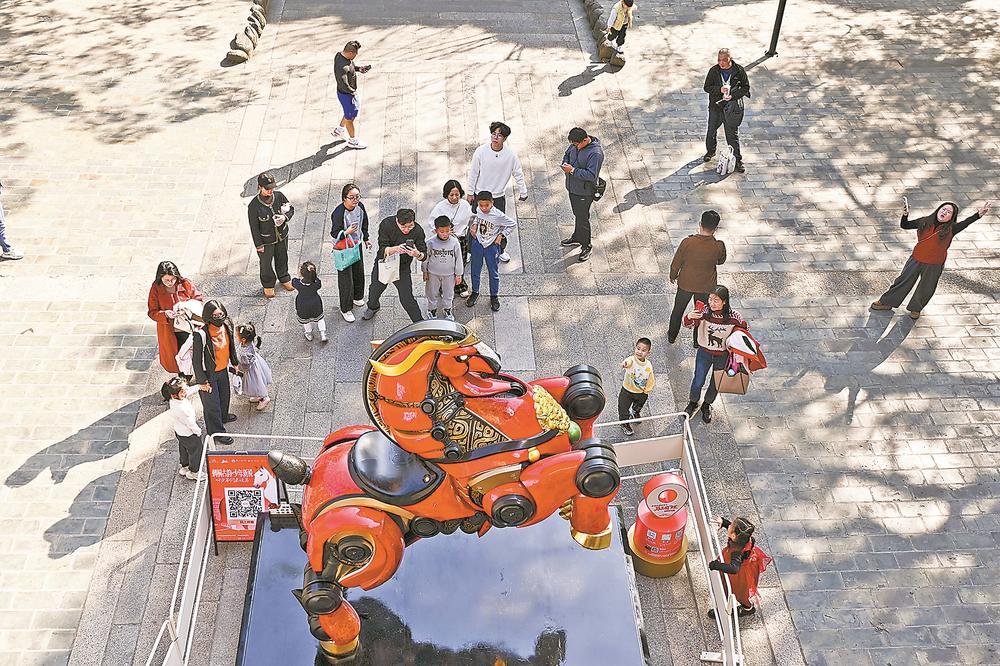 据介绍,这六匹姿态各异、寓意吉祥的骏马,串联起府文庙、西街钟楼、芳草园广场、德济门遗址广场、通淮关岳庙、泉山门广场等古城内的历史遗迹、人文景观与市井烟火,为市民游客提供完整的文化体验动线。(记者 庄钊滢 摄影报道)